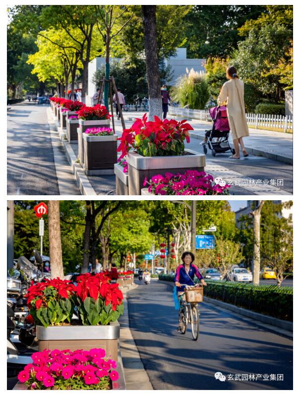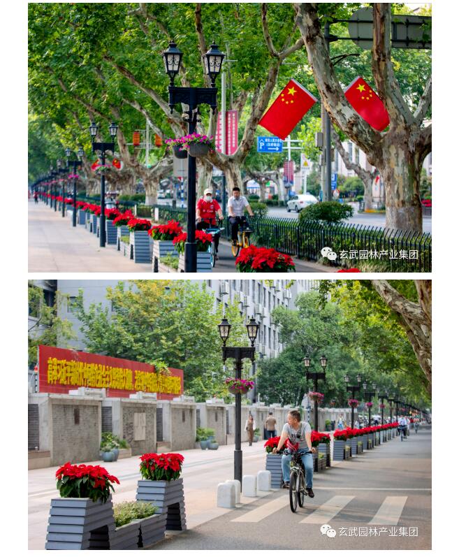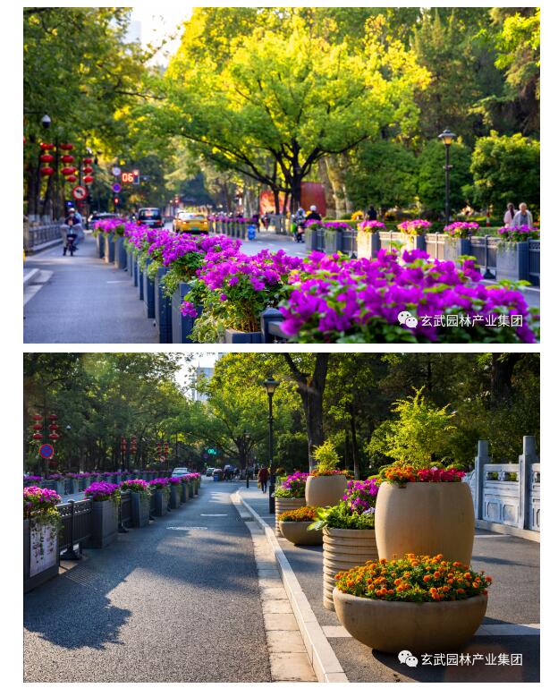 對北京東路、市府門前路、長江路、中山東路、中山路、鼓樓廣場等重要節(jié)點(diǎn)采用組合花箱、護(hù)欄花箱、花碗、燈桿掛花、彩色花球等多種組合搭配,重點(diǎn)選用亮金女貞、三角梅、龍血樹、變?nèi)~木、深藍(lán)鼠尾草、孔雀草、一品紅、歐月、垂掛牽牛等花卉,豐富城市街角,營造出濃厚的節(jié)日氣氛。